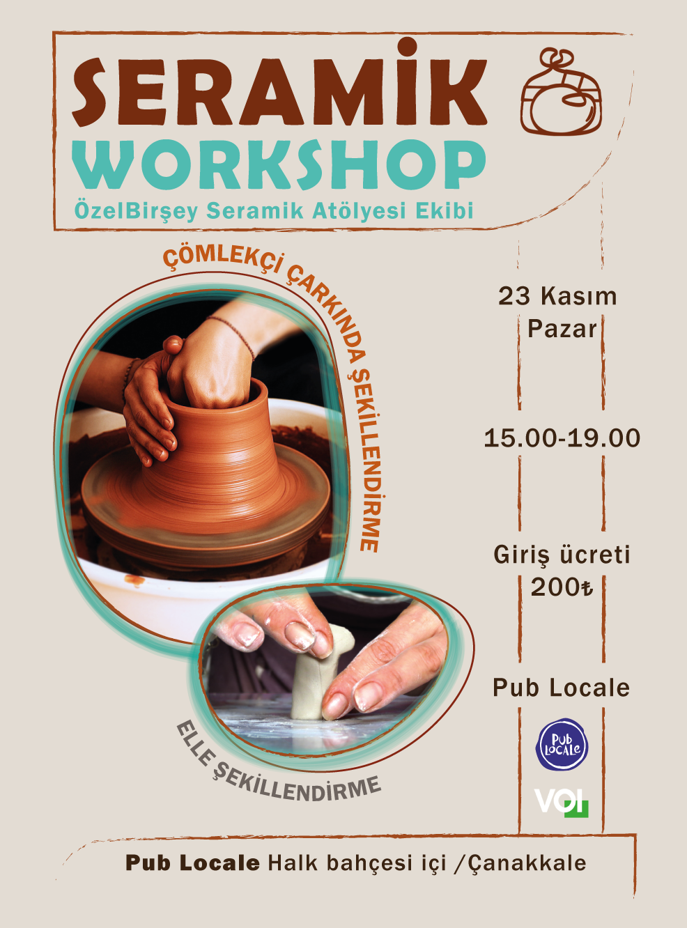 Çömlekçi çarkında şekillendirme ve elle form verme deneyimiyle, hem eğleneceğimiz hem de üretmenin mutluluğunu paylaşacağımız bir gün bizi bekliyor.